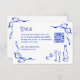 Einzigartige Handgezeichnete Retro Französisch Spaß Einladung mit einem Bugrahmen, ein skurriles trendiges Kunstwerk für Ihre blaue französische Hochzeit von Savanamm. Fügen Sie Ihren QR-Code für Ihre Website hinzu