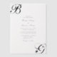 Die Initialen der Braut und des Bräutigams stehen im Mittelpunkt dieses Designs. Personalisierte Schriftzeichen mit Schrift-Schriftart-Typografie schaffen eine perfekte Verbindung von Moderne und Eleganz. Ein einfaches, maßgeschneidertes, minimalistisches Hochzeitsinklusivdesign mit modernem Schwarz-Weiß-Monogramm. Es stehen auch passende Hochzeitsstilleriedateien und andere Hochzeitsformate zur Verfügung. Um die Initialen neu zu positionieren, klicken Sie bitte auf den Link "Weitere Anpassungen vornehmen", wenn Sie Details personalisieren.