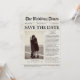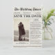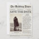 Diese einzigartige "Save the Date" Karte verbindet moderne Eleganz mit zeitlosem Charme. Das Set in Schwarz und Weiß wirkt klassisch und gleichzeitig modern. Das Foto am Ende der Seite zeigt das Paar, Amelia und Thomas, in einem Augenblick reiner Freude gefangen. Das kühne, minimale Layout lässt ihre Liebe durchscheinen und macht diese Karte zum perfekten Vorgeschmack auf den kommenden Tag. Es ist eine wirklich elegante und raffinierte Art, Ihren besonderen Tag mit einer Touch von Vintagen Zeitungen Flair bekannt zu geben.
