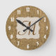 Burlap Country Lace Applique Rustic Fabric Print Muster Monogram Initial Wall Clock Personalisiert