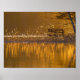 Einsame Bank am See im goldenen Licht Poster
