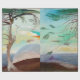 Die einsame Zeder, originelle expressionistische Gemälde einer schönen Landschaft mit einem Baum und dem Ozean im Hintergrund.