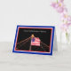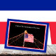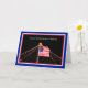 Diese hübsche Karte ist speziell für das stationierte Militär zu Weihnachten gemacht. Die Vorderseite zeigt ein Foto von der Spitze eines Weihnachtsbaumes im Freien mit Lichtern. Die Fahne der Vereinigten Staaten fliegt stolz in der Mitte des Fotos mit den Worten "Zuhause des Freien wegen der Tapferkeit" oben. Das gesamte Foto ist rot, weiß und blau gestrichen. Innen ist ein schöner Vers speziell für die dislozierten Militär. Copyright Kathy Henis