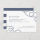 Die elegante Hochzeitszimmerkarte an der Küste mit den Details Ihres Empfangs in klassisch marineblau auf einem knusprigen, weißen Hintergrund, die an den Ecken mit Loops aus geflochtenem nautisches Seil hervorgehoben wird. Die Karten werden zu breiten nautischen Streifen umgeschaltet.