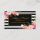 Bläserfarbene Hochzeitsflora Rosa Schwarzes Gold und schwarze Streifen Registrierungskarte einfügen