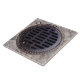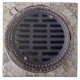 Kennzeichnet ein antikes Kanaldeckelgitter, das in einer alten Kopfsteinstraße nestled ist. Rustikal und mit Weltscharme verfeinert.