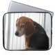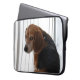 Dieses Portrait ist ein Foto eines Senioren-Beagle, der ein albernes, niedliches Beagle-Gesicht macht.