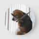 Dieses Portrait ist ein Foto eines Senioren-Beagle, der ein albernes, niedliches Beagle-Gesicht macht.