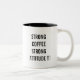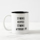 Attitude Zwei-Tone-Kaffee-Tasse. ''STRONG COFFEE STARKE ATTITUDE' Sprichwort auf beiden Seiten. Macht ein lustiges Geschenk für Tochter oder Sohn oder Geschwister zum Geburtstag, Weihnachten oder zu jeder Zeit! Sie können den Text auch mit Ihren eigenen Anführungszeichen personalisieren.