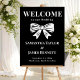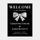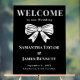 Machen Sie eine kühne, zeitlose Aussage mit diesem von der Krawatte inspirierten Willkommensschild. Mit seinem kontrastreichen und sauberen Typografie ist es perfekt für feierliche Hochzeiten und luxuriöse Orte.