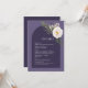 Herrliche weiße Blüte mit Grün, Set über einen reichen lila Hintergrund, in einem minimalistischen Design... mit Ihren Veranstaltungsdetails in modernem Drehbuch und klassischem Schriftart, Set in einem tiefer lila Bogen. Einfach. elegant. Ideal für eine Winterhochzeit.