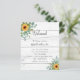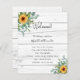 Ein modernes, elegantes Hochzeitsprogramm, Zeitleiste. Rustikales weißes Holz als Hintergrund. Mit Sonnenblumen dekoriert, grüne, wasserfarbene Eukalyptuspflanzen. Personalisieren und fügen Sie Ihre Namen und Hochzeitsdetails. Schwarze Buchstaben. Wenn Sie mehr Text haben, können Sie den Zeilenabstand verringern und die Dekoration auf der Rückseite entfernen.