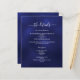 Ein modernes, elegantes Hochzeitsprogramm/Details/Zeitleiste. Ein marineblau gefärbter Hintergrund. Die blaue Farbe ist ungleichmäßig. Personalisieren und fügen Sie Ihre Namen und Hochzeitsdetails. Weiße Buchstaben. Text auf beiden Seiten. Fügen Sie Ihre Hochzeitswebsite url zum QR-Code hinzu. 1 Blatt = 1 Programm, mit der Kante bis Kante bedruckt.