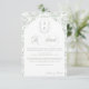Sage Green Monogram Wappen Wedding Details card: Vintag inspiriert Line Art Monogram Wappen mit eleganter weise grüner Typografie. Ein chinoiserie Blumenmuster in Form eines Bogens und auf der Rückseite für zeitlose Eleganz. Eleganter Script-Schriftart für einen formalen und klassischen Stil. Fügen Sie Ihre eigene Webseite mit einem benutzerdefinierten QR-Code auf der Rückseite oder löschen Sie ihn einfach für eine traditionellere Karte.