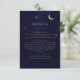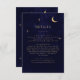 Das Design zeichnet sich durch einen vergoldeten Mond und Sterne aus, die sanft glänzen, Set vor einem sauberen Hintergrund. Die Einladung benutzt klassische Serifentypografie, die eine traditionelle und formale Touch mit ihrem gepflegten und klaren Stil hinzufügt. Die Kombination aus modernem Design, glänzenden Golddetails und zeitlosen Schriftart macht die Einladung zu einem unvergesslichen und einladenden Tag.