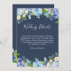 Navy Blue Hydrangeas Floral Wedding Info Details Card. (1) Für weitere Anpassungen klicken Sie bitte auf den Link "Weiter anpassen" und verwenden Sie unser Designwerkzeug, um diese Vorlage zu ändern. (2) Wenn Sie Thicker-Papiere / Matte Finish bevorzugen, können Sie den Matte Paper Type auswählen. (3) Wenn Sie Hilfe oder passende Artikel benötigen, kontaktieren Sie mich bitte.