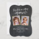 Einzigartige "Save the Dates"-Ankündigung zur Verlobung mit Fotos der Braut und des Bräutigams aus der Kindheit. Die Ankündigung lautet: "Diese Kinder heiraten". Das Design zeichnet sich durch moderne, handgeschriebene Skripte mit einem Chalkboard-Hintergrund und Imitate goldenen Rahmen aus. Laden Sie lustige alte Fotos der Braut & Bräutigam, als sie Kinder waren, und passen Sie die Formulierung an.