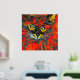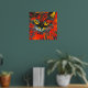 Einzigartige und lebendige abstrakte Katzenmalerei mit echten goldgeflochtenen Mustern. Die Katze ist lebendig in Rot, Gold und Orange. Ein einzigartiges Stück, das Ihre Zuhause aufhellt, die Wände aufhellen soll. Katzenliebhaber werden das Liebe haben.