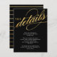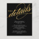 Moderne goldene Schriftzeichen lesen "Die Details" und personalisierbaren Text unten. Ideal, um mit Ihrer Hochzeitseinladung Anfahrtsbeschreibungen und Unterkunftsinformationen zu erhalten.