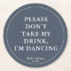 Elegantes Smoky Navy Blue Wedding Untersetzer Design, um mit Ihrem Hochzeitstil zu koordinieren. Eine tolle Art, um sich um Getränke zu kümmern, die nicht mitgenommen werden. Der Satz lautet: "Bitte nimm meinen Drink nicht, ich tanze." Diese Vorlage ist zu 100% personalisierbar für Ihren Komfort. Weitere trendige Farben verfügbar Wenn Sie Hilfe benötigen, kontaktieren Sie mich bitte (Maria) über den Kontaktknopf oder direkt unter info@the52edit.com ...Happy to help!