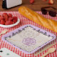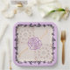 Hochzeiten Teller oder Tee-Party Teller Die Teller haben vier Quadrate und eine Rose in der Mitte des Platzes. Zwei schlichte Quadrate und zwei Quadrate mit kleinen Blume auf ihnen. Ideal für einen Tee-Party, ein Brautparty oder eine Hochzeitsfeier. Helle lila und lila Farben.