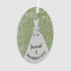 Green Bridesmaid Wedding Keepake Vielen Dank für Gaben. Grün Vintages Viktorianisches ästhetisches Damaskusmuster. Süß illustriert mit einem weißen Hochzeitskleid und klösterlichen musikalischen Noten, ein Herz und ein Ort für den Hochzeitsfeiertitel wie Trauzeugin, Blumen Girl, Bridesmaid, Usher, Mutter der Braut. Und ein Ort für ein Foto auf der Rückseite und ein persönliches Dankeschön von Braut und Bräutigam.