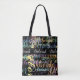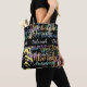 Eine elegante schwarze (benutzerdefinierte) Tasche.bag mit eigenem Namen in verschiedenen Farben und Schriftart-Stilen wiederholt ... eine phantastische und kreative Idee für eine Frau.