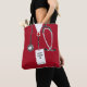 Kreative Krankenschwester-Tasche mit roten Klinikdrähten und Stethoskop-Kunst.
