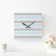 Einzigartiger Ozean Blau Beige Weißer Streifen Kun Quadratische Wanduhr