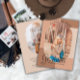 Retro-Farbblockdesign in abgestuften Terrakottönen mit abgerundeten, länglichen Rechteck-Fotos auf der Vorder- und Rückseite und das Wort "Graduate" im Skripttext (nicht editierbar) auf der Vorderseite unter dem Foto. Komposites Design von Holiday Hearts Designs (Rechte vorbehalten) mit Template-Platzhalter-Fotos über Unsplash.