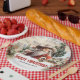 Der Weihnachtsmann als Sheriff in der Prärie und mit Präriegras und roter Poinsettia dekoriert, ist ein wahrhaft Western-Erlebnisdesign für die Teller. Personalisieren Sie den Text einfach oder verließ ihn leer. Violetdrucke ©