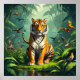 Einzigartiger Tiger im Dschungel mit Vögeln um sic Poster
