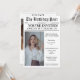 Feiern Sie einen Meilenstein im Stil mit dieser einzigartigen 20. Geburtstagsparty Newspaper Cover Foto Einladung. Die Vorderseite verfügt über ein individualisierbares Foto und alle wesentlichen Party-Details - von Datum und Zeit bis zum Standort Auf der Rückseite, fügen Sie ein weiteres Foto des Geburtstagssterns und eine lustige Tatsache, die Einladung noch persönlicher und unvergesslicher zu machen. Ein perfekter Weg, um für diesen besonderen Tag bleibende Erinnerungen zu schaffen!