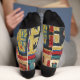 Dieses ansehnliche Design, das aus einem Fragment eines handgewebten Flachweberteppichs stammt, hat ein wunderbares geometrisches Muster. Das ursprüngliche antike Kilim-Stück ist etwa 150 Jahre alt. Die Farben sind Rose rot, Mitternacht, Marine, königlich, türkisblau, Kamel und cremig weiß. Das ist ein uraltes Stammesdesign, das heute noch stilvoll ist und noch viele weitere Jahre in Anspruch nehmen wird. Klassisch geht nie aus dem Häuschen. Ihre Füße werden so aussehen, als hätten sie Spaß, wenn Sie diese einzigartigen Socken tragen.