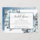 Einzigartige Brautdusche mit exquisitem Blattwerk und Blume, die Details in einer Kombination von staubblauen, marineblauen, weißen, grauen und salzigen Tönen umrahmen. Brautparty in eleganter moderner Kalligraphie. Die Rückseite der Karte zeigt ein zartes blaues Aquarellwasser. Koordinierung der verfügbaren Produkte. Teil unserer Hochzeitskollektion "Rustic Blue Mountains".