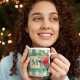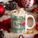 Niedliche Weihnachtskaffeemaschine mit einem Vintagen Büffel-karierten Muster in grün und creme, florale Blumenbouquets in modernen Aquarellfarben mit Beeren und Heiligem, und zwei trendige Typo-Monogramm-Namensinitialen in spiegelroten quadratischen Formen. ++++++++++++++ Einfach mit Ihren Namensinitialen personalisieren. +++++++++++ Es kann ein einmaliges Geschenk für einen geliebten Freund, Verwandten oder besten Freund sein oder ein Ehepaar für Freundin, Verlobte, verlobte, Neuvermählte, Ehemann und Ehefrau.