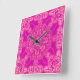 Einzigartiges, helles, rosa Lila Verziertes Muster Quadratische Wanduhr