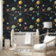 Planeten im Kosmos Astronautikraum Vintage Kindergartenwand Dekoration. Lösungen für die Inneneinrichtung.