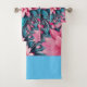 Einzigartiges rosa blaues Blume Muster Design Badetuch Set