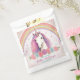 Bezaubernde Gefälligkeitssäcke mit einem Einhorn in der Mitte mit einem farbenfrohen Horn, gewelltem Haar, Rose und einem glitzernden Regenbogen im Rücken. Sehr niedlich und hübsch. Die Farbtöne sind Rosa, Blau, lila, Gold und Grün. Sehr viel Spaß für eine einzigartige Geburtstagsfeier!