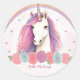 Einzigartiges Rosa Einhorn, Rose, Rainbow Birthday Runder Aufkleber