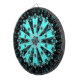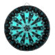 Einzigartige Blume aus schwarzem Fraktal mit Aqua-Blätter und Highlights auf klassischem Dartboard-Design. Die Blätter haben einen glänzenden Metalllook. Modernes, digitales abstraktes Design. Fröhliche, klassische Aqua-Blumenmuster auf schwarzem Hintergrund. Viel Spaß! Originelles Design von Anura Design Studio.
