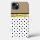 Dieses einzigartige Design der Kombination von Sternenbraun und Goldfarben mit schwarzen Polka-Punkten auf weißem Hintergrund ist sicher, eine Aussage zu machen. Das Gehäuse weist ein fett weißes und schwarzes Polka-Dotmuster mit einem individuelle Name aus Stärchenbraun und Goldband auf. Das Design bietet einen schönen Kontrast zwischen dem schwarz-weiß-braunen und goldenen Band der Seesterne und dem Schwarz-Weiß. Dieses auffällige Muster eignet sich perfekt für eine Vielzahl von Gegenständen, wie z.B. Telefonkisten und Tasche.