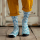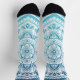 Add a note of the unexpected to your outfit with a pair of Eira Mandala Crew Socks in an Arctic glacier-inspired gradient of bright aqua to deep blue.