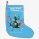 Eis Skaten flamingos mit Weihnachtsmannmützen, genießen einen Tag draußen rund um einen Weihnachtsbaum. Diese lustige, bezaubernde Illustration wird ein wenig tropische Wärme in Weihnachten. Fügen Sie dem Strumpf Ihren Namen hinzu und machen Sie ihn einzigartig. Frohe Weihnachten!