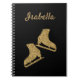 Personalisiertes Eis-Skaten-Notebook für Figur-Skater (Mädchen oder Junge) - Eis-Skate-Design - nettes Eis-Skaten-Geschenk, um Notizen zu machen oder ein Tagebuch zu erstellen. Farben: Gold Glitzer Effekt auf schwarzen Hintergrund. Design: Pair der Figur Skate + personalisieren mit dem Namen des Eises Skater. Designed by iceskatingpassion.com. Andere Farben im Shop https://iceskatingpassion.com/stores/