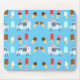 Ein niedliches Retro-ästhetisches illustriertes Muster von lustigen pastellfarbenen Retro-Stil Eis LKWs Happy Sweet Leckereien schmücken Sommerspass Nostalgie Erinnerungen Design deluxe tragen alle Computer-Zuhause oder Office-Spaß mousepad. Holen Sie sich heute eine kitschige, lustige Retro-Eis-van-Muster Maus-Matte.