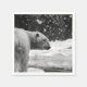 Ein einsamer Eisbär im Schnee blickt gut zurück.