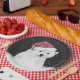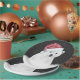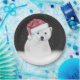 Polar Bär mit Santa Claus Hut in Schneeflocken auf schwarzem Hintergrund. Die Hintergrundfarbe kann geändert werden. Text kann bearbeitet oder gelöscht werden.
