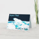 Ein etwas stilisiertes, blau-farbenes Bild eines Polar Bären (Ursus maritimus), das auf dem Polareis auf einer dunklen, mondbeleuchteten Winternacht ruht. Französischer Text, "Joyeux Noё l" erscheint in leuchtend blau und weiß. Fügen Sie Ihren eigenen zusätzlichen Text hinzu.